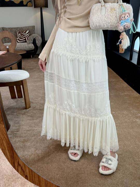 张涩涩 轻柔奢暖 初冬 重工白色多段式蕾丝拼接仙仙裙半身长裙