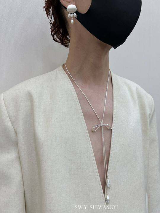 SWY蝴蝶结天然巴洛克抽拉项链小众高级感气质时尚百搭锁骨链长链