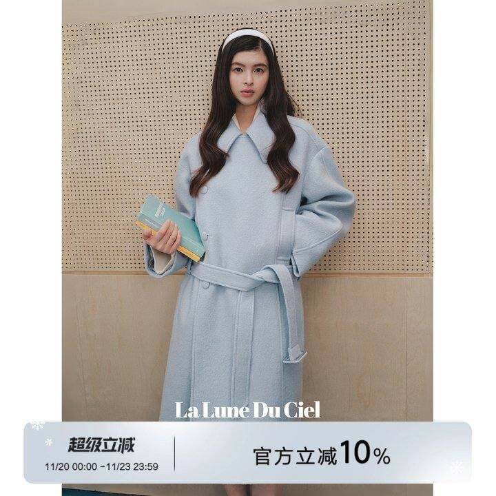 LaluneDuCiel 羊毛重磅腰带收腰毛呢外套女冬气质保暖中长款大衣