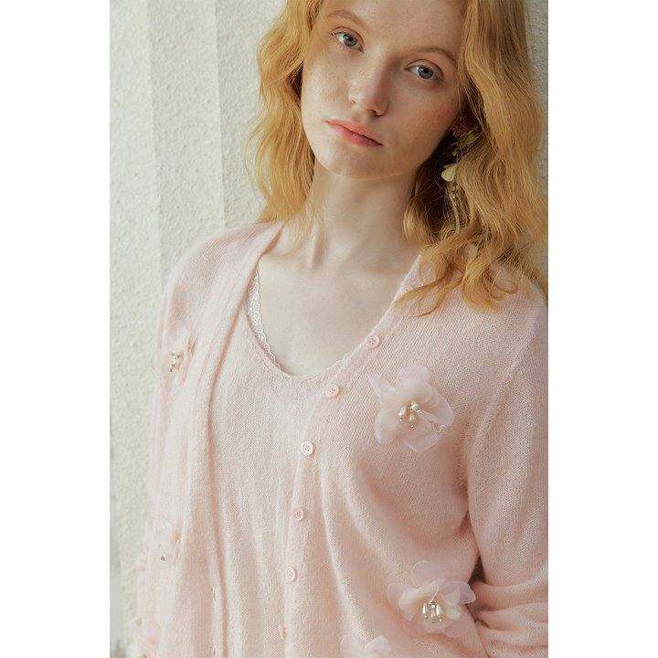 奥芝国 温柔立体花朵假两件式单排扣羊毛针织衫女秋冬3色上衣