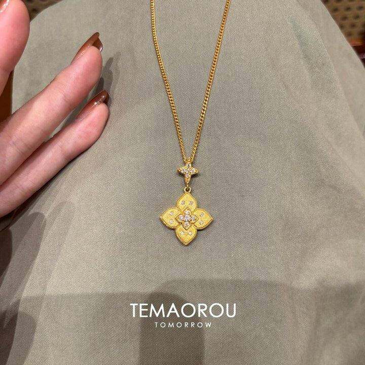 V金不掉色拉丝四叶草吊坠复古项链女轻奢高级感毛衣链饰品锁骨链