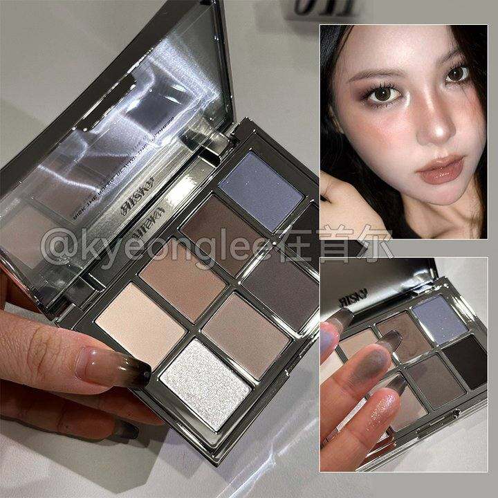 risky八色眼影盘轻薄哑光珠光综合盘高光自然不晕染朋克风新品女