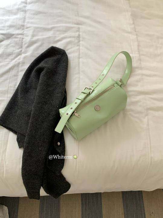 肉肉陈Whiterm韩国新款百搭宽肩带女包超纤油腊皮单肩斜跨枕头包