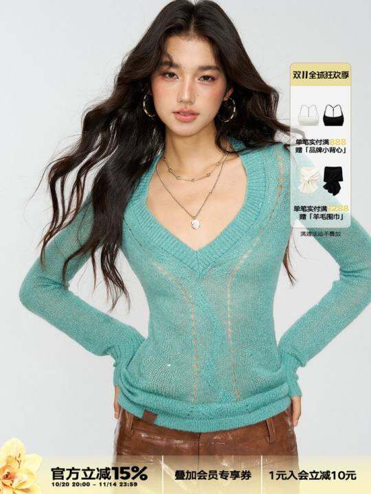 4muggle绞花细闪针织毛衣秋季彩色修身辣妹显瘦打底衫领气质上衣