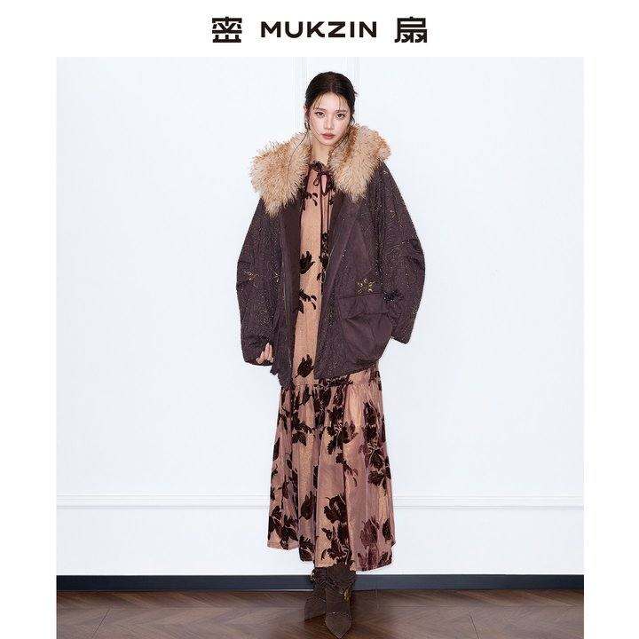 密扇2025冬「不止檀香」新中式设计刺绣宽松大毛领羽绒服大衣外套