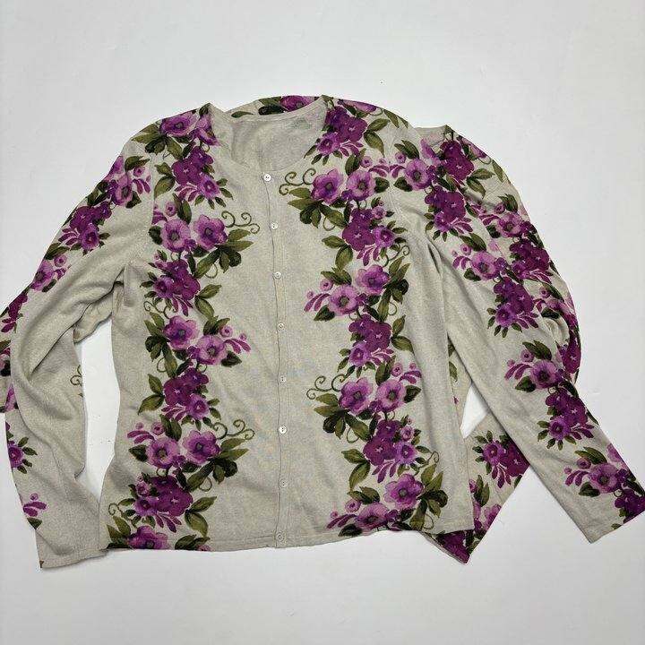 微瑕外贸原单85桑蚕丝15骆驼绒圆领印花长袖春秋薄款印花开衫女