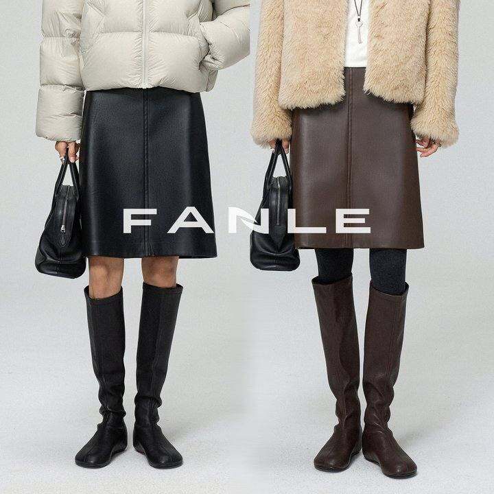 FANLE STUDIOS高品质蛋白皮超纤PU哑光高腰拼接A字皮裙中裙半身裙