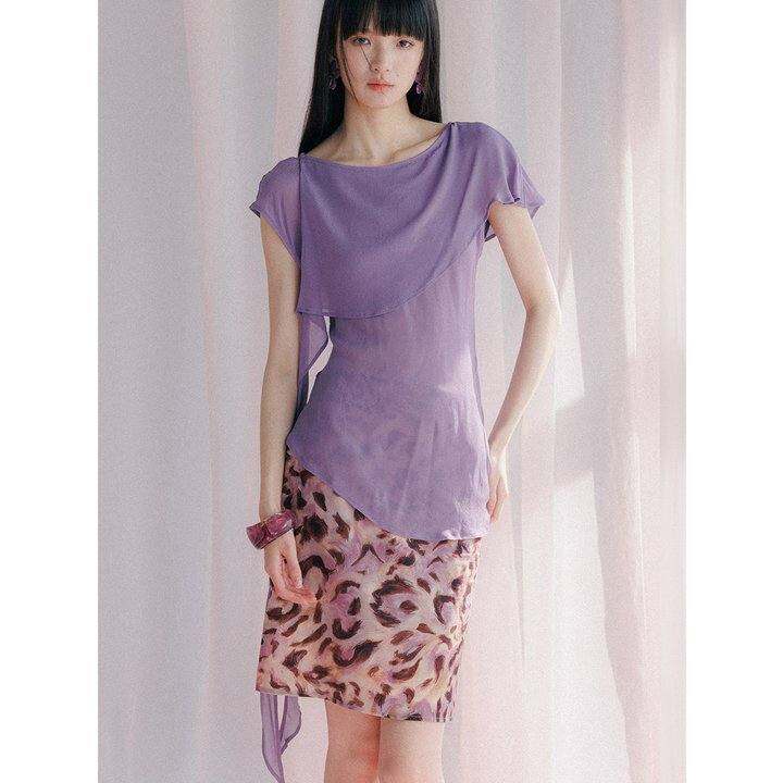 这个买了紫色,也是很飘很轻薄的衣服,上身感觉很适合配我的豹纹裙子,留下了