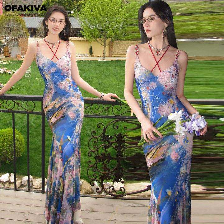 OfAkiva 原创油画印花吊带连衣裙女氛围感大摆修身鱼尾长裙