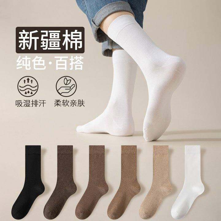 推荐:袜子男长袜纯棉秋冬季男士中筒防臭休闲男袜日系春秋白色男生长筒