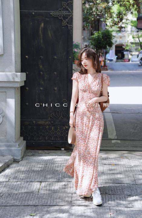 杜小熊【定制】100真丝'前男友碎花裙' 刺绣前长后短连衣裙