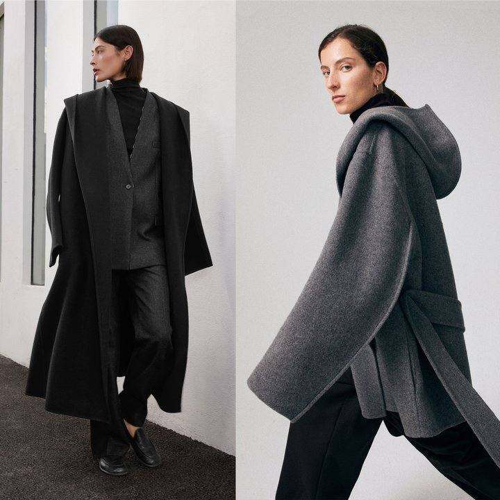 CHICJOC意大利哥伦布骆驼绒/双面羊绒时髦线条感长短弯袖连帽大衣