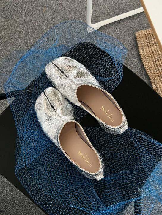 HOME WORK原创设计师手工分趾忍者tabi牛皮低跟套脚女单鞋银裂纹