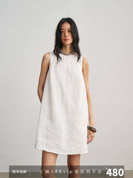 Ayuko b|日本进口凉爽亚麻放松旧钱船领无袖宽松懒惰连衣裙