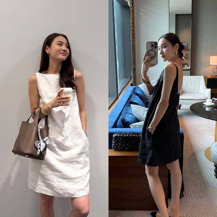 靠谱KEEP KAPU 【法式优雅】亚麻露背U领黑色吊带洋装女