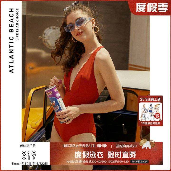 Atlanticbeach新款性感深V泳衣女夏海边温泉遮肚显瘦时尚连体泳装