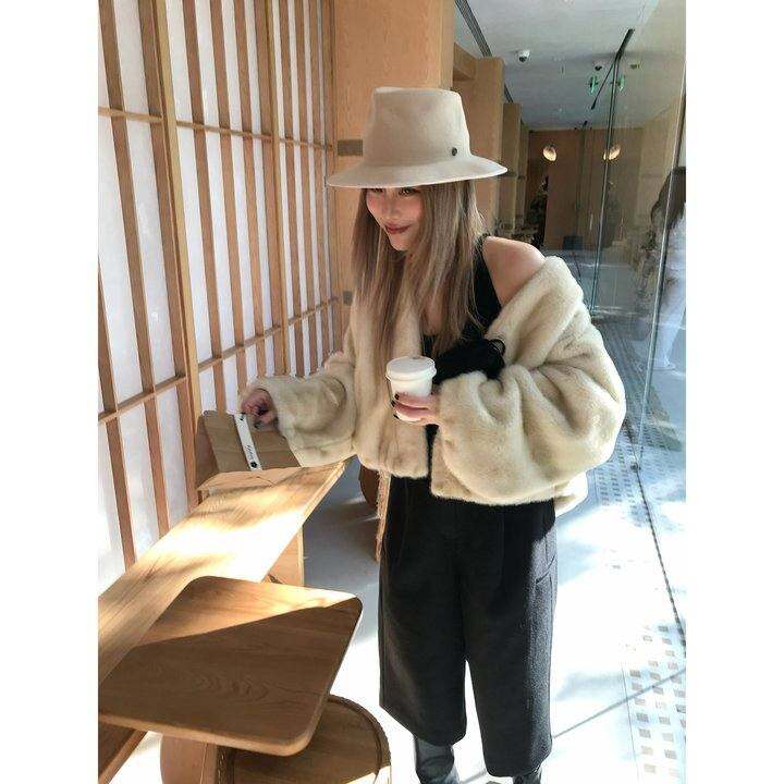 SukiiRED环保貂毛麂皮绒皮毛复合一体高级蓬松保暖皮草外套女.特