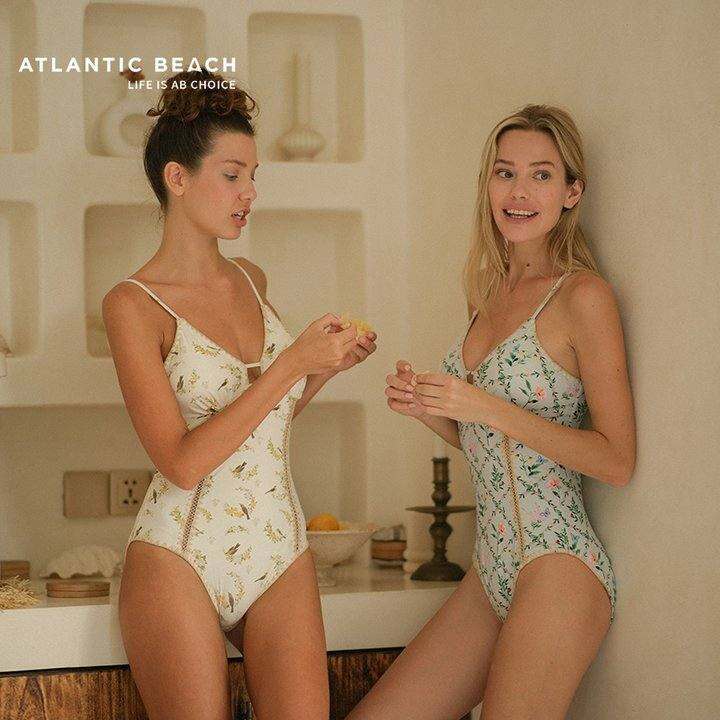 atlanticbeach2024新款度假泳衣 复古花鸟系列连体泳衣法式田园风