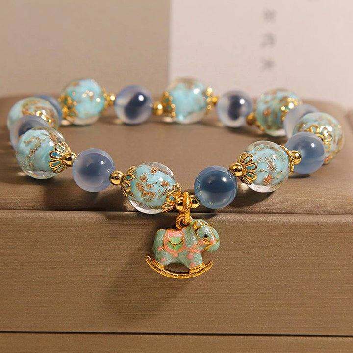 天然蓝色糖心玛瑙手链女轻奢小众精致夜光琉璃水晶手串送闺蜜礼物