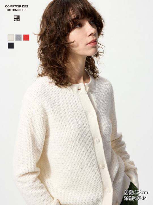 优衣库合作款/女装羊毛混纺圆领针织开衫/毛衣25秋冬新款480025