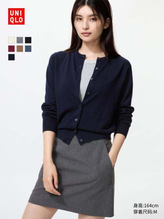 优衣库女装精纺美利奴羊毛圆领针织开衫/长袖通勤秋冬新款478331