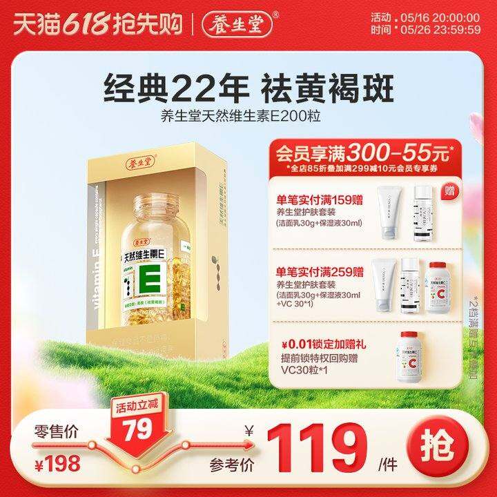 养生堂天然维生素E软胶囊ve维e祛黄褐斑保健200粒官方正品搭维C片