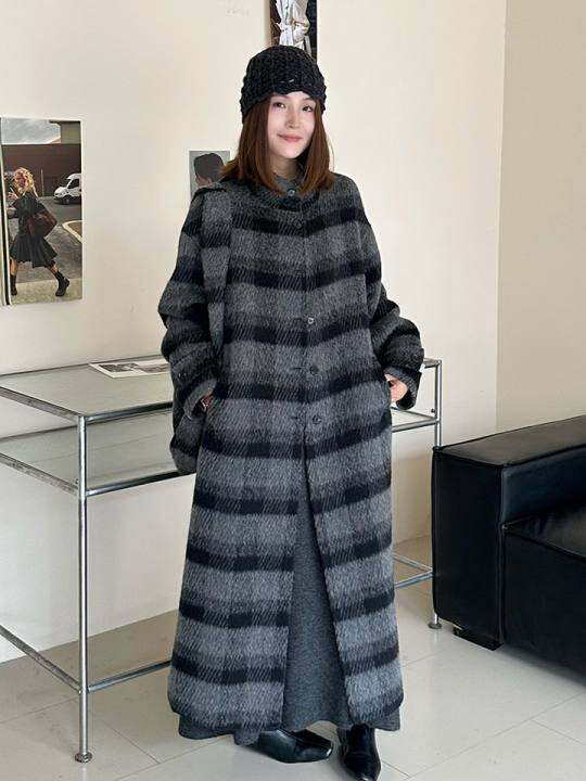 25秋冬新款韩系宽松加厚中长款双面羊绒大衣女立领毛呢外套配包包
