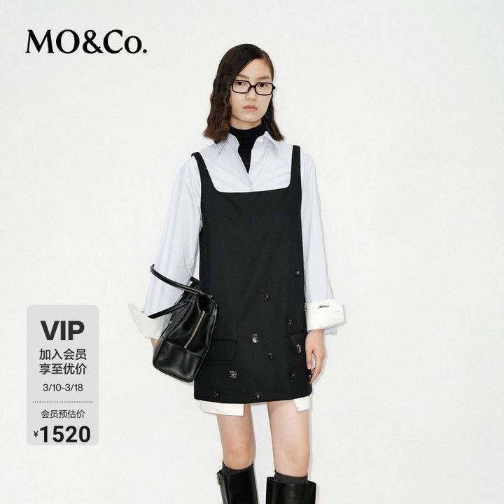 【明星同款】MOCO连衣裙2024冬新品精纺全手工珠绣钻饰MBD4DRS031