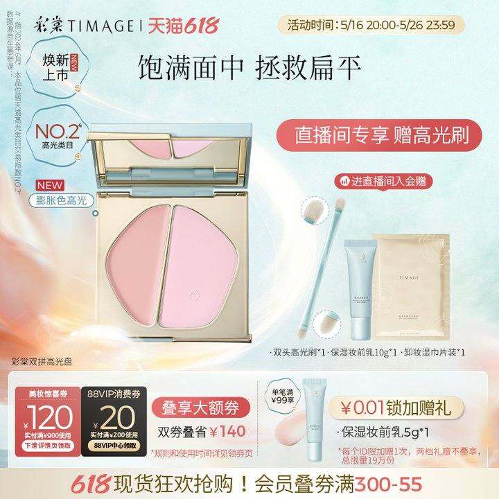 【618立即抢购】彩棠TIMAGE双拼高光膏粉一体修容盘哑光提亮脸部