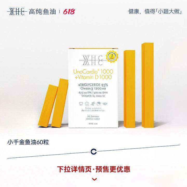 WHC小千金深海鱼油rTG结构95%高纯度鱼油Omega3维生素D3成人