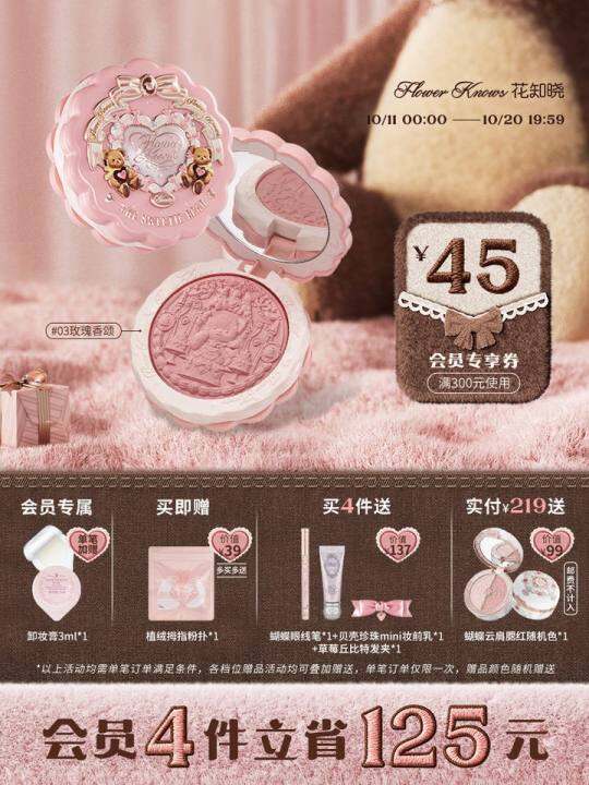 花知晓甜心小熊丝缎浮雕腮红柔光感清透显色旗舰店