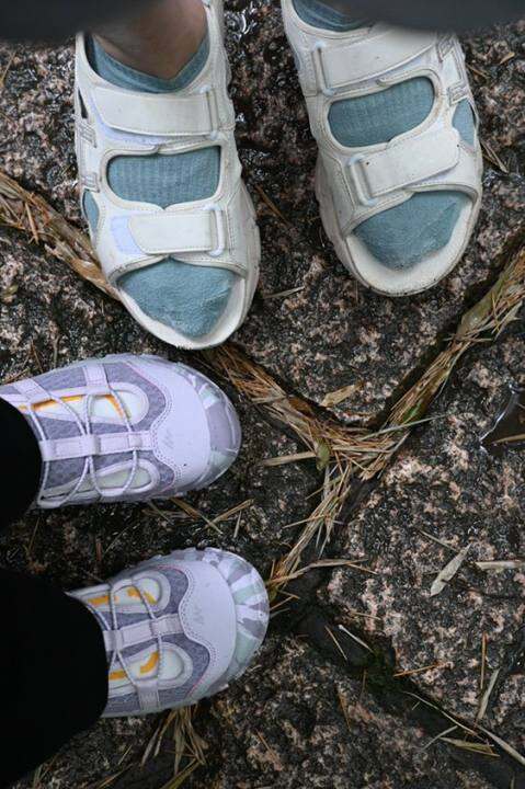 这双紫色迪卡侬童鞋买到后一直爱不释脚,防滑、透气、显脚小,36脚买的36-37,有点空间不挤脚。