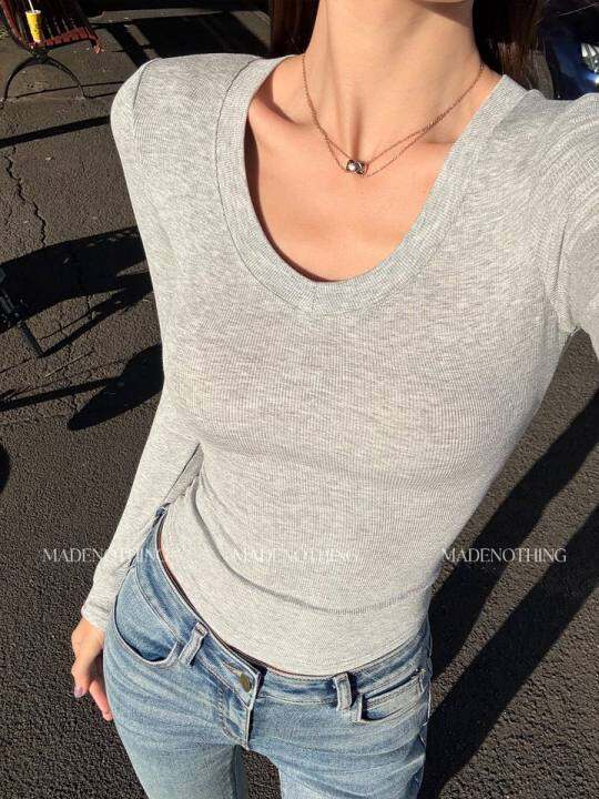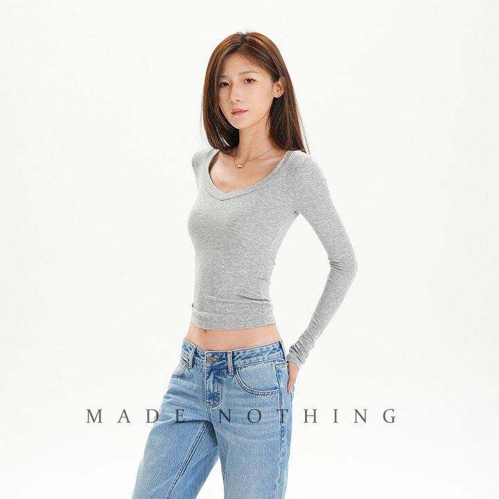 MADE NOTHING Soft系列 莱赛尔裸感大V领无痕打底弹力T恤长袖女