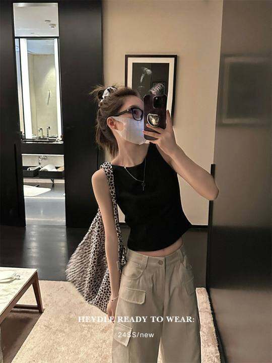 黑豆哼哼 窄肩救星*刺绣船领小背心女夏外穿黑白百搭上衣无袖内搭