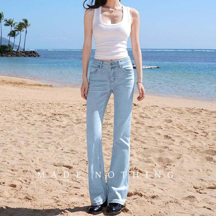 MADE NOTHING MR107冰蓝高弹Stretch经典显瘦中腰微喇牛仔裤女