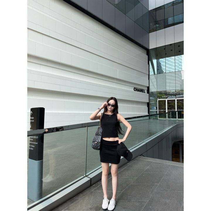 5werkwen 都市sporty针织套组 莱赛尔棉船领无袖上衣包臀短裙套装