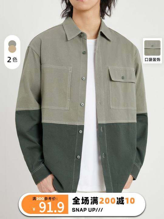 亦止男装日系拼接撞色长袖衬衫男纯棉衬衣外套韩版潮流帅气开衫男
