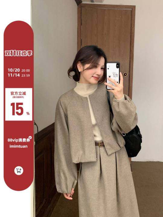 陆小团团覆古呢子外套半身裙套装2025秋季新款韩系气质显瘦两件套