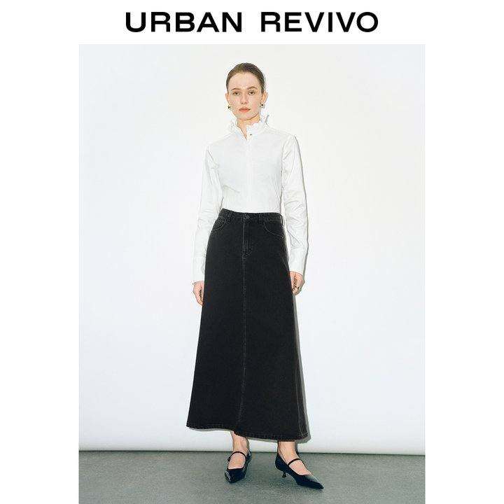 UR2025春季新款女装时尚复古休闲洗水黑色牛仔半裙UWG850077