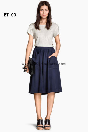 15春季新品ETHM女款松紧腰双口袋纯色及脚踝半身中裙