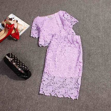 香港代购正品水溶蕾丝套装两件套短袖上衣+半身裙修身显瘦夏新款