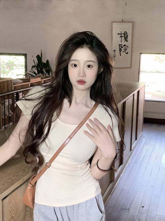 u领短袖t恤女装夏季2024年新款打底衫内搭修身显瘦小个子短款上衣