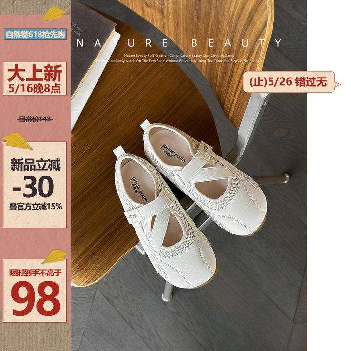 自然卷新款休闲运动玛丽珍鞋2025年夏季新款软底网面魔术贴芭蕾鞋
