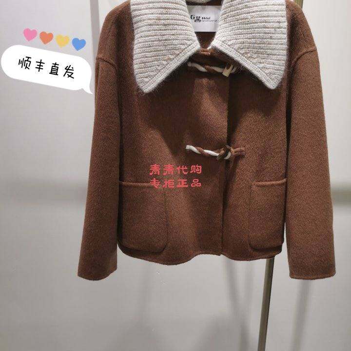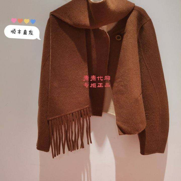 国内代购石茜自带围巾短款大衣X1GAE410A202
