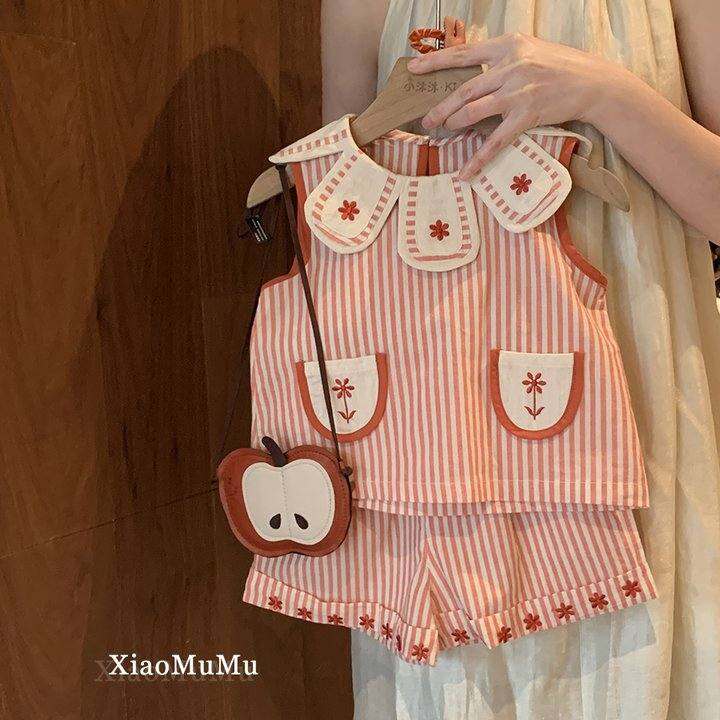 小沐沐女童洋气套装夏天2025新款小童女宝宝短裤背心两件套 时髦