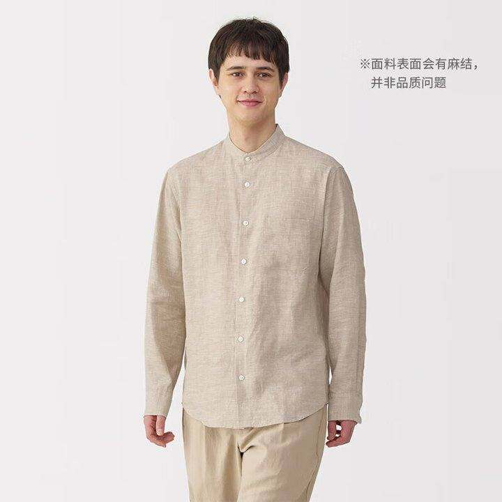无印良品 MUJI 男式汉麻水洗立领长袖衬衫男士夏季衬衣外套男装