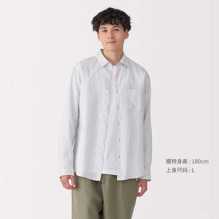 无印良品 MUJI 男式 汉麻水洗长袖衬衫 男士衬衫外套男款夏季男装
