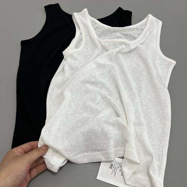 70%麻感棉CHAO强透气面料夏季推荐基础色背心无袖上衣白色圆领女