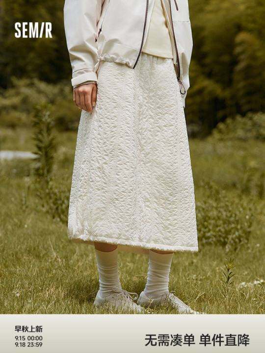 森马半身裙女冬季肌理夹棉松紧腰A字长裙抽绳2025新款温柔气球裙