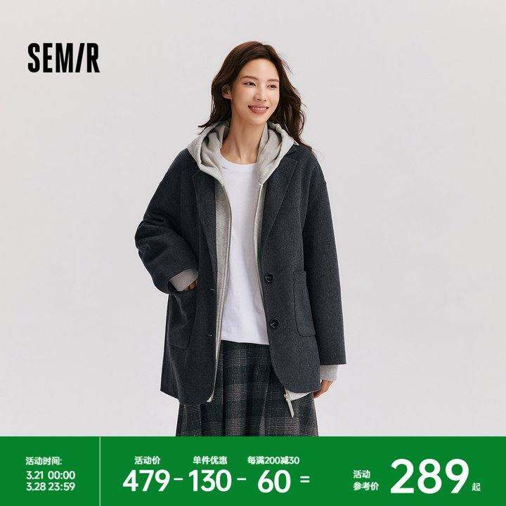 森马外套女深秋衣服通勤加厚毛呢西装百搭宽松大衣2024冬新款夹克
